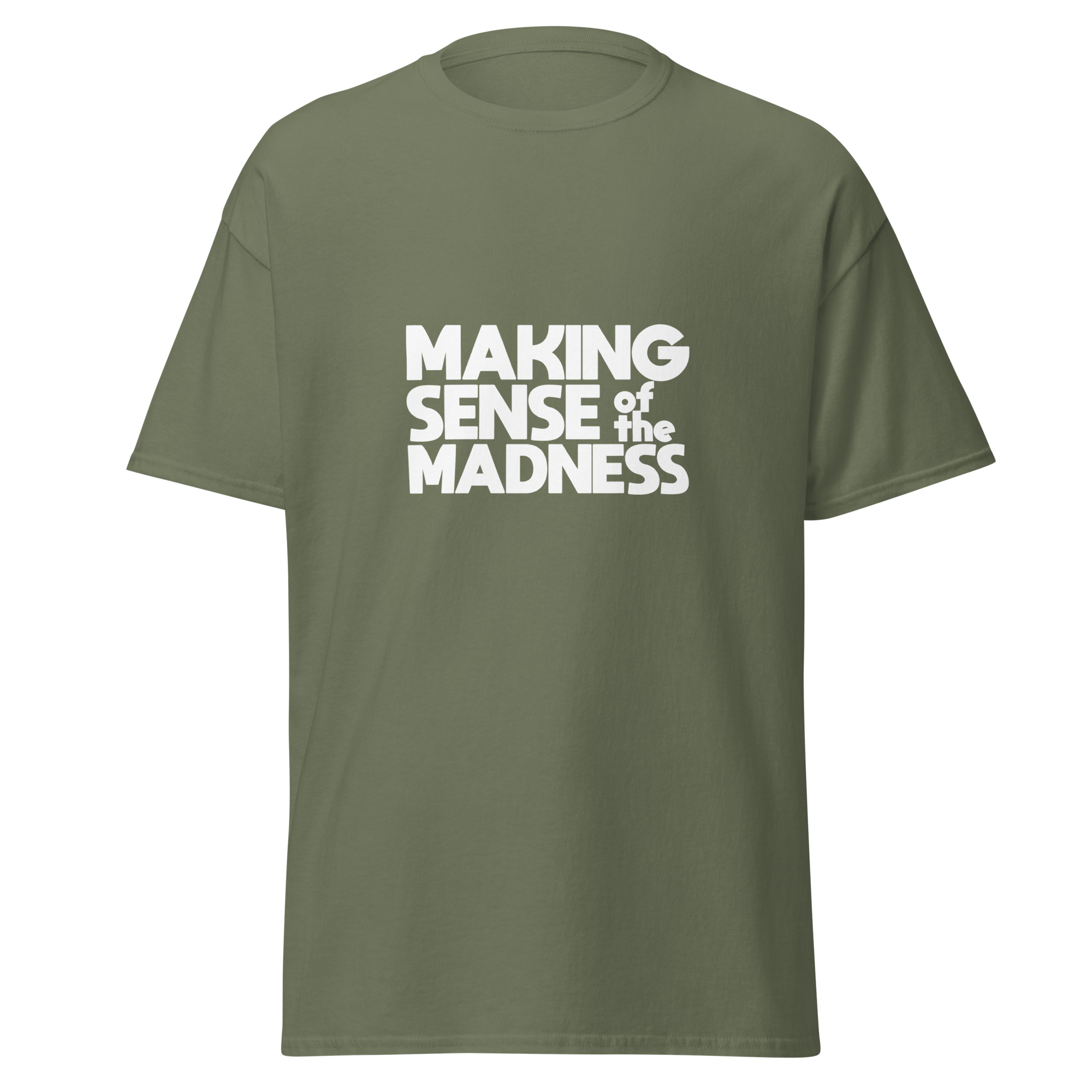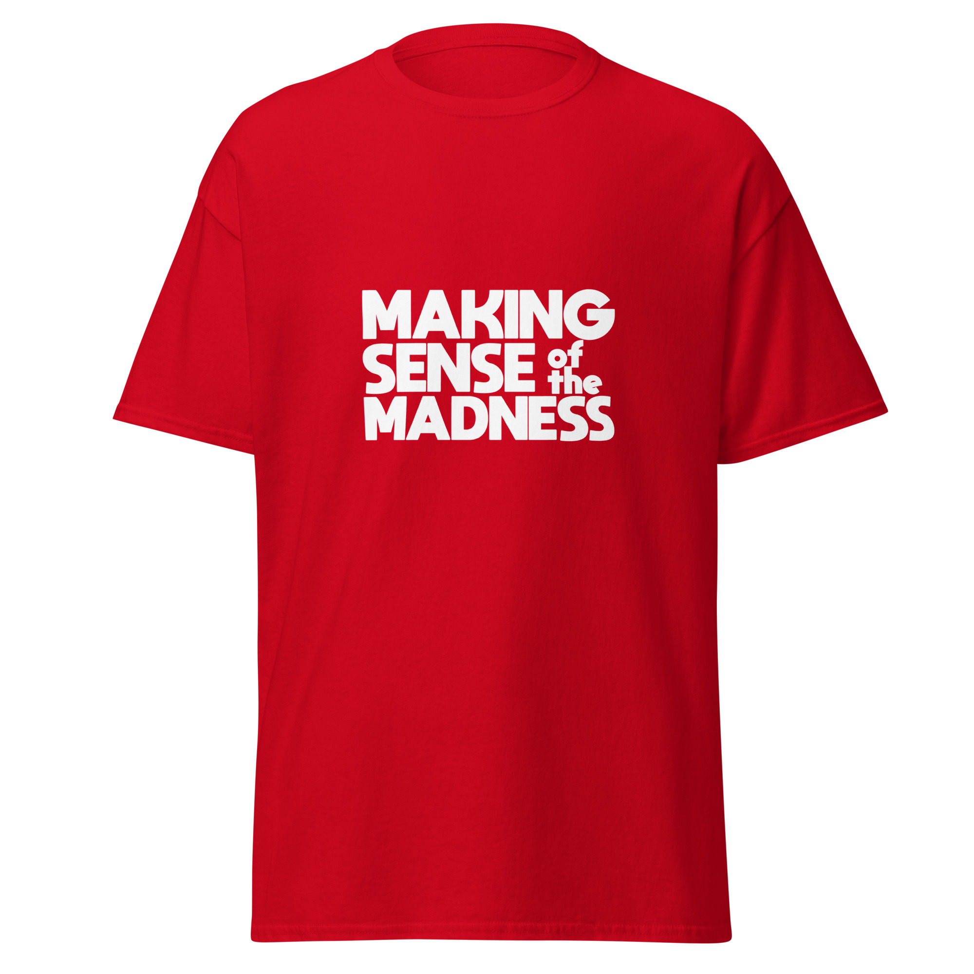 This comfortable and stylish tee features The Making Sense of the Madness logo.