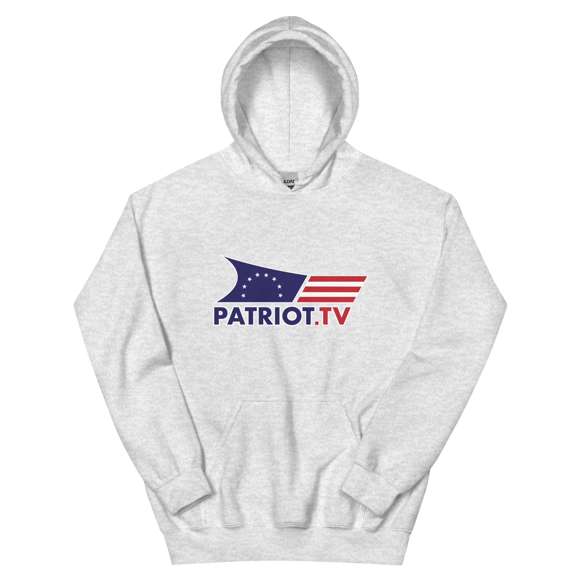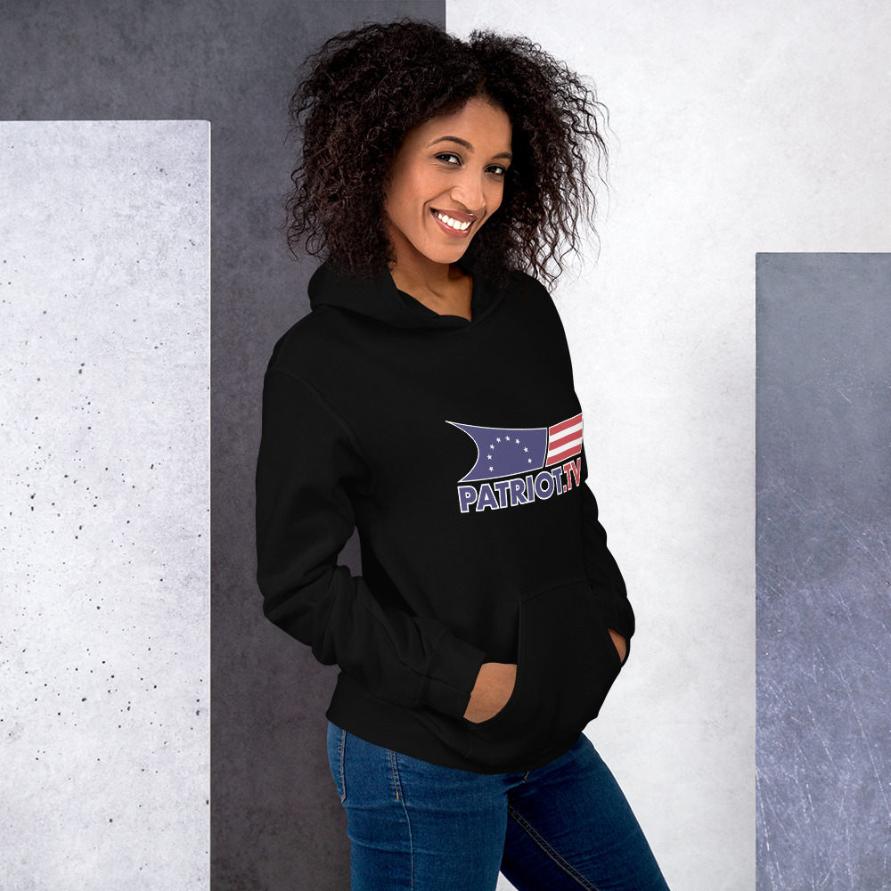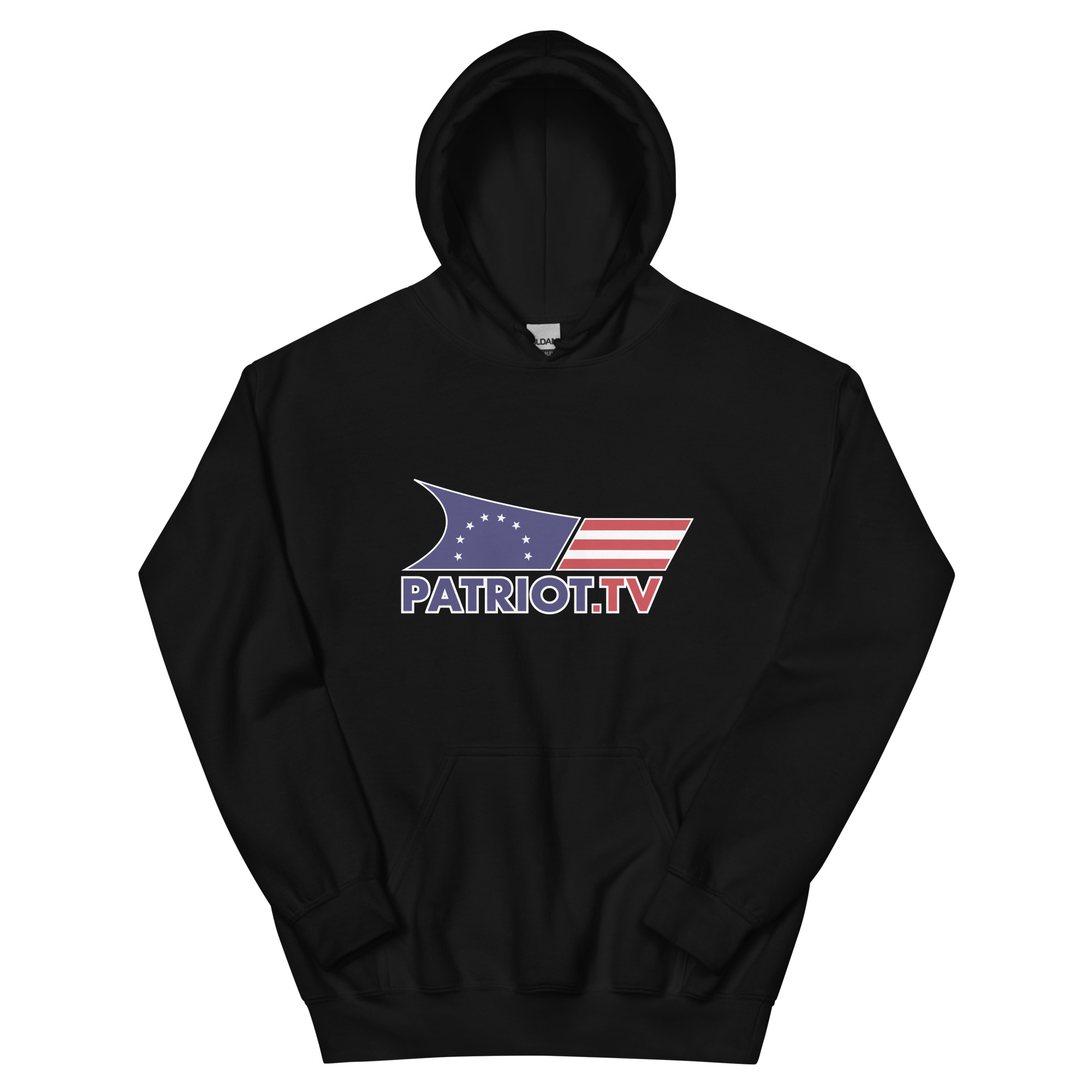 Stay cozy and show your support with the Patriot TV Logo Hoodie featuring a convenient front pouch. This classic hoodie combines comfort and style, making it the perfect addition to your everyday wardrobe. The bold Patriot TV logo proudly displayed on the chest lets you represent your favorite channel wherever you go. Crafted from soft, durable fabric, this hoodie is perfect for layering during chilly days or lounging at home. The front pouch provides extra warmth for your hands or a handy spot to store essentials.